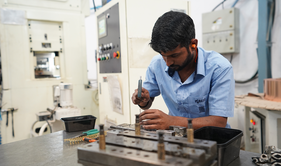 Srujana has multiple high speed stamping presses including Bruderer and Hensel. We have developed the capability to handle wide range of materials such as brass, copper, Phosphor Bronze and CRCA.